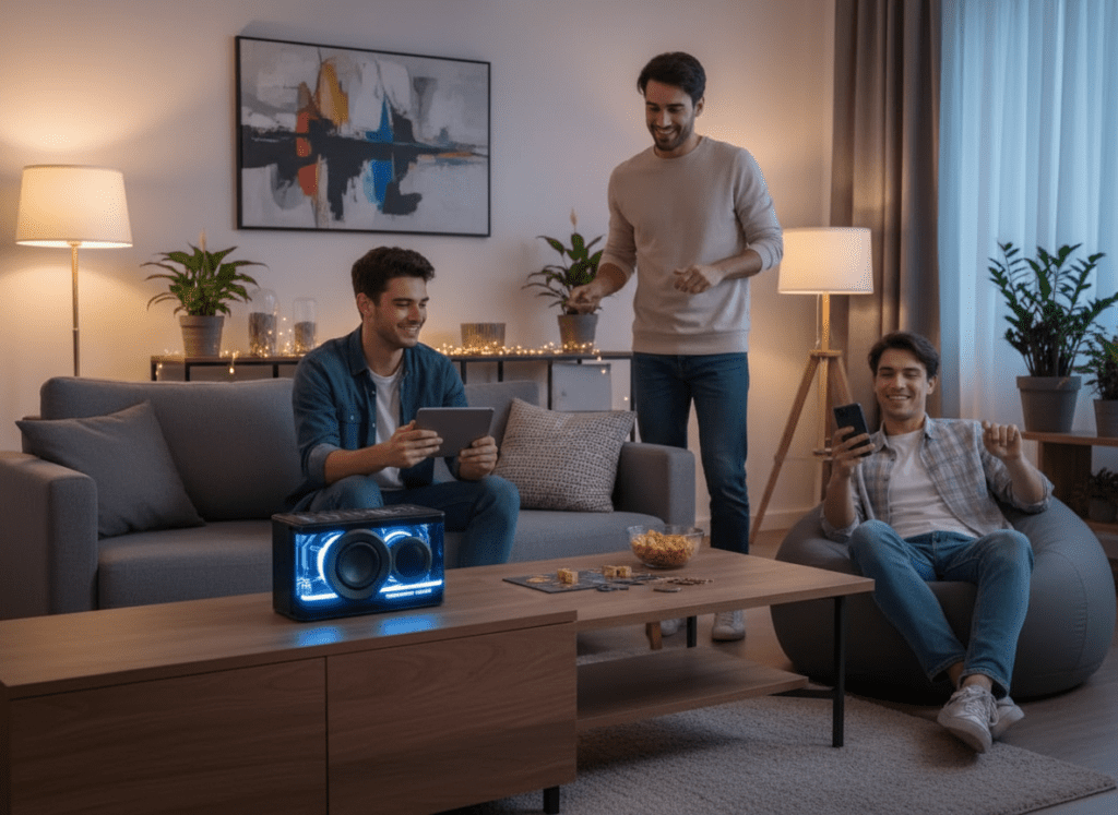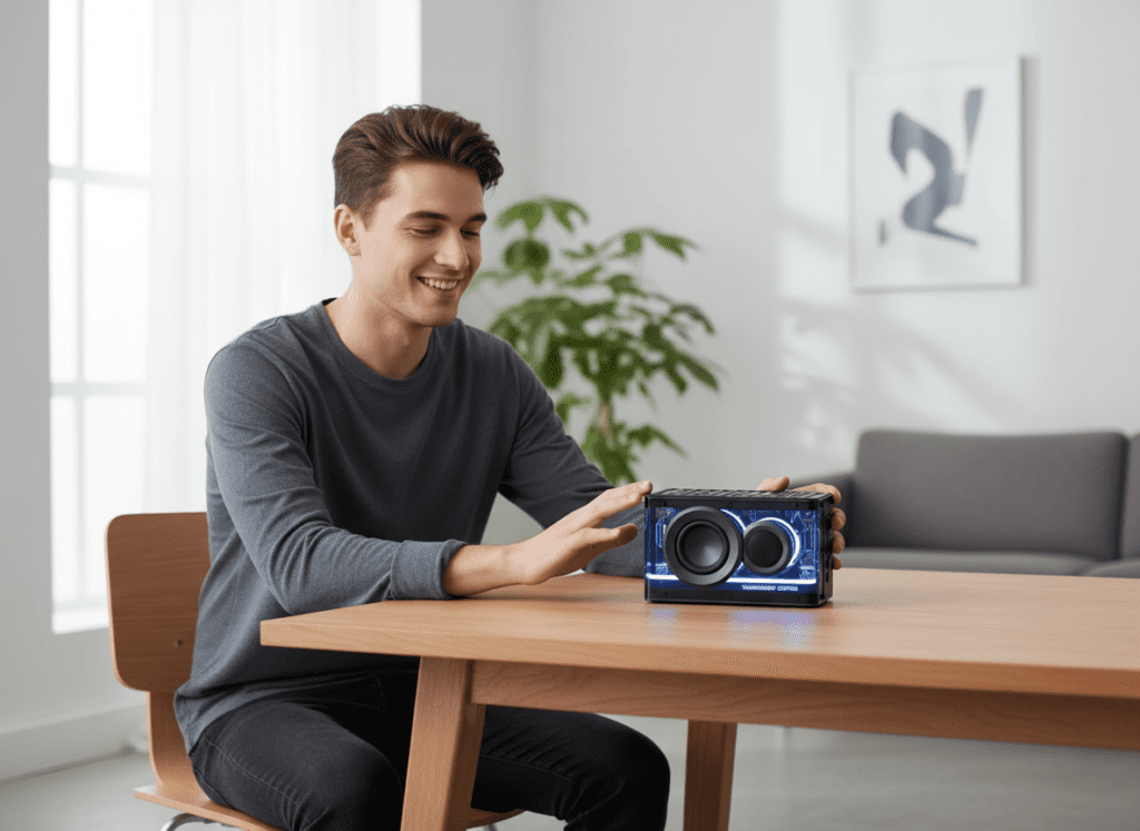Porque ele une design moderno, tecnologia avançada e áudio premium em um único produto. Não é apenas uma caixa de som, é um upgrade completo na forma como você consome música e entretenimento.